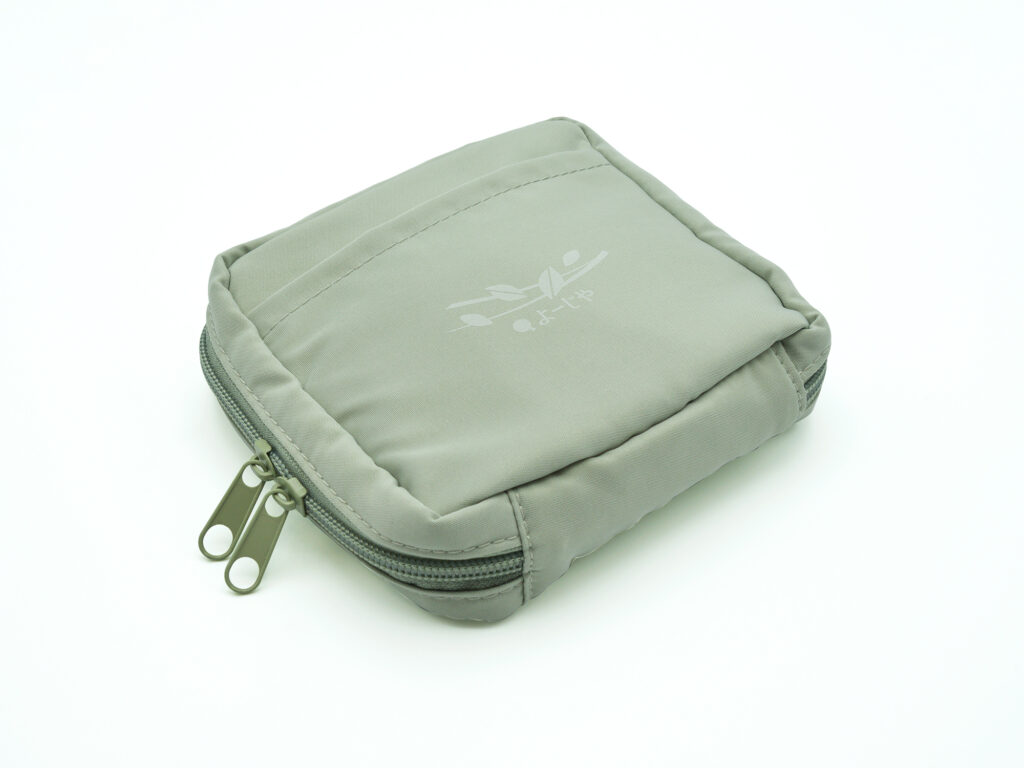 「あおゆらら」シリーズを含む5,000円(税込)以上をご購入いただいたお客さまに、「あおゆらら」デザインのガジェットポーチをプレゼントいたします。中には仕切りがあるので、イヤホンやコード類の収納におすすめ。