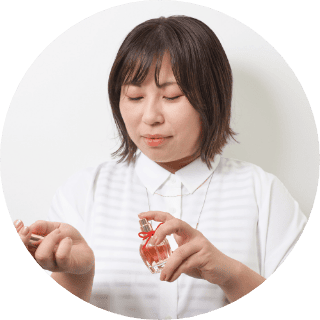 容器のかわいらしさも相まって、やわらかくかわいい香りを身に纏うだけで気分が上がります!香りも強すぎないのと、つけてから時間とともに香りの変化を楽しめるのもポイントです。